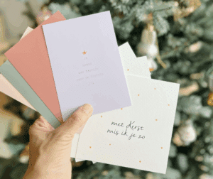 In de maand november is er elke week een lieve actie. Met korting, een kadootje of iets ander liefs. Deze week is er 10% korting op alle kersthangers én je krijgt gratis een setje van acht kerstkaarten bij gemis. Deze actie is geldig tot en met zondag 16 november, en je krijgt de korting en het setje kaarten alleen als je de kortingscode ‘novemberliefs’ gebruikt in stap twee van je bestelling. De code is helaas niet met terugwerkende kracht te gebruiken.