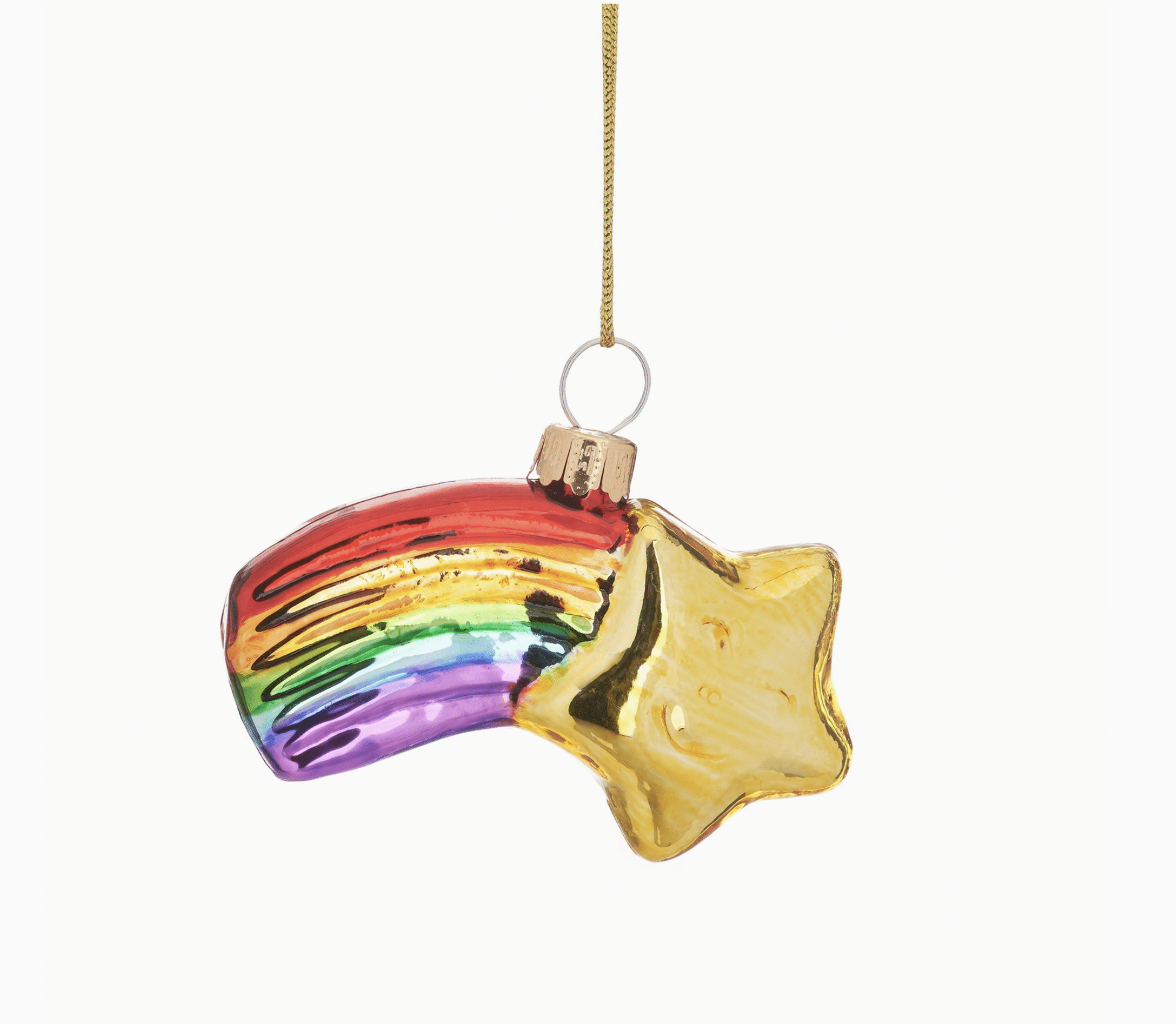 Prachtige en lieve kerstbal in de vorm van een vallende ster. Hij is gemaakt van mondgeblazen glas en 7,4 x 1,3 x 4 cm groot.