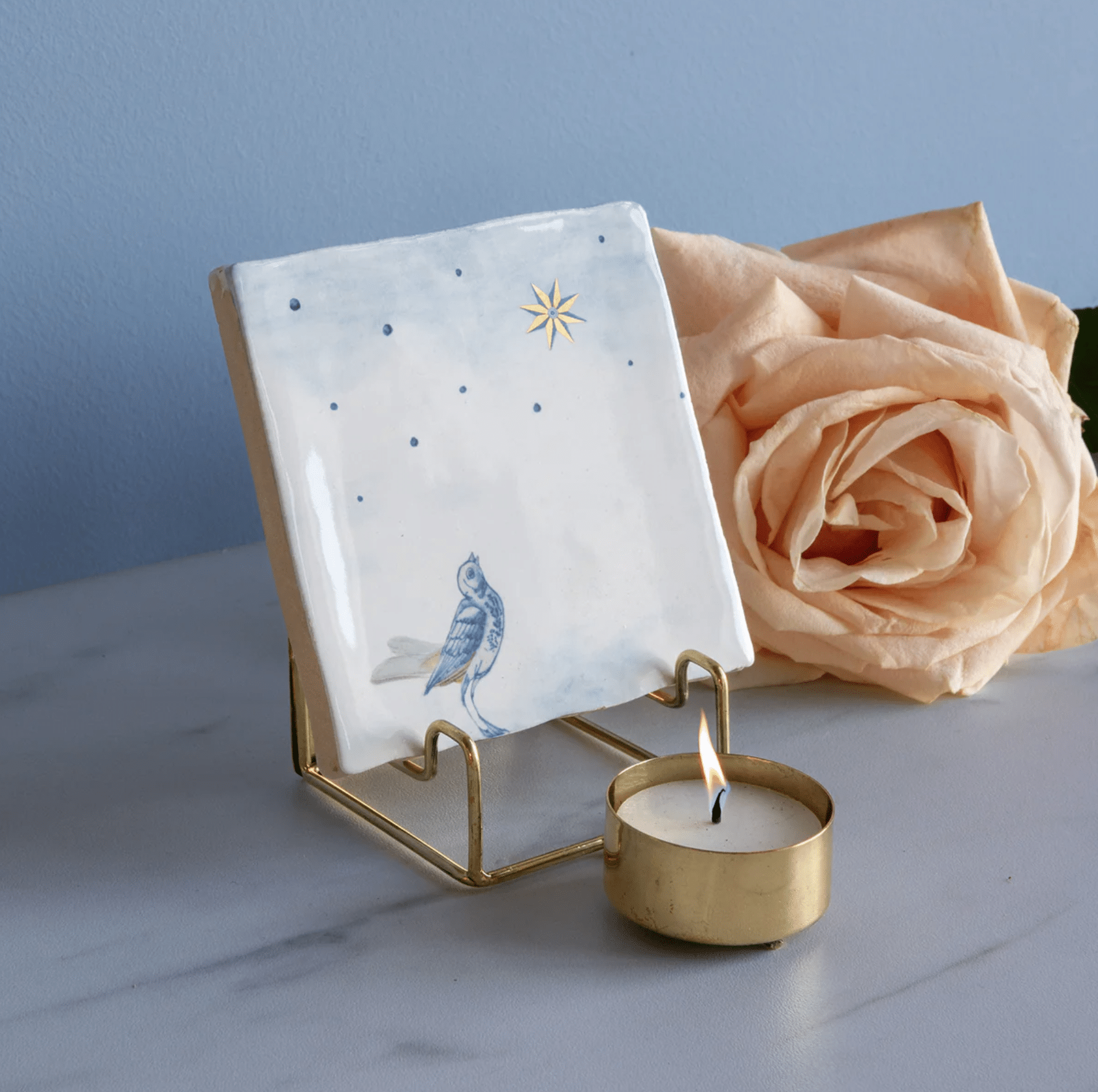 LET OP: De houder wordt zonder tegel geleverd, maar met waxinelichtje (de tegel op de foto dient als voorbeeld).