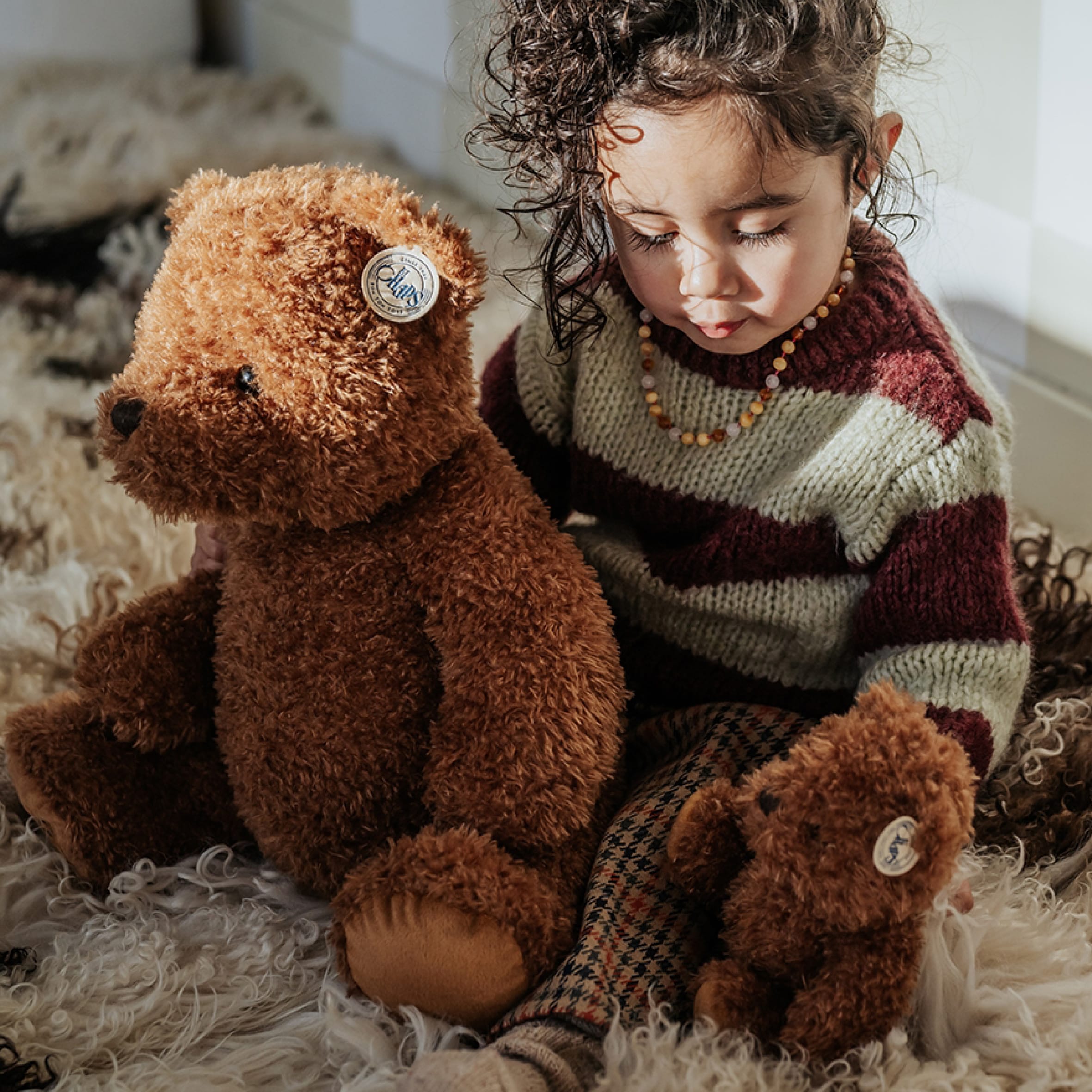 Prachtige lieve beer met een traditionele look. Heerlijk zacht om mee te knuffelen, maar je kunt hem ook heel goed neerzetten op een speciale plek in huis.