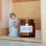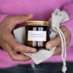 De zachte licht zoete geur van het kaarsje is; Houtsalie & Zeezout.