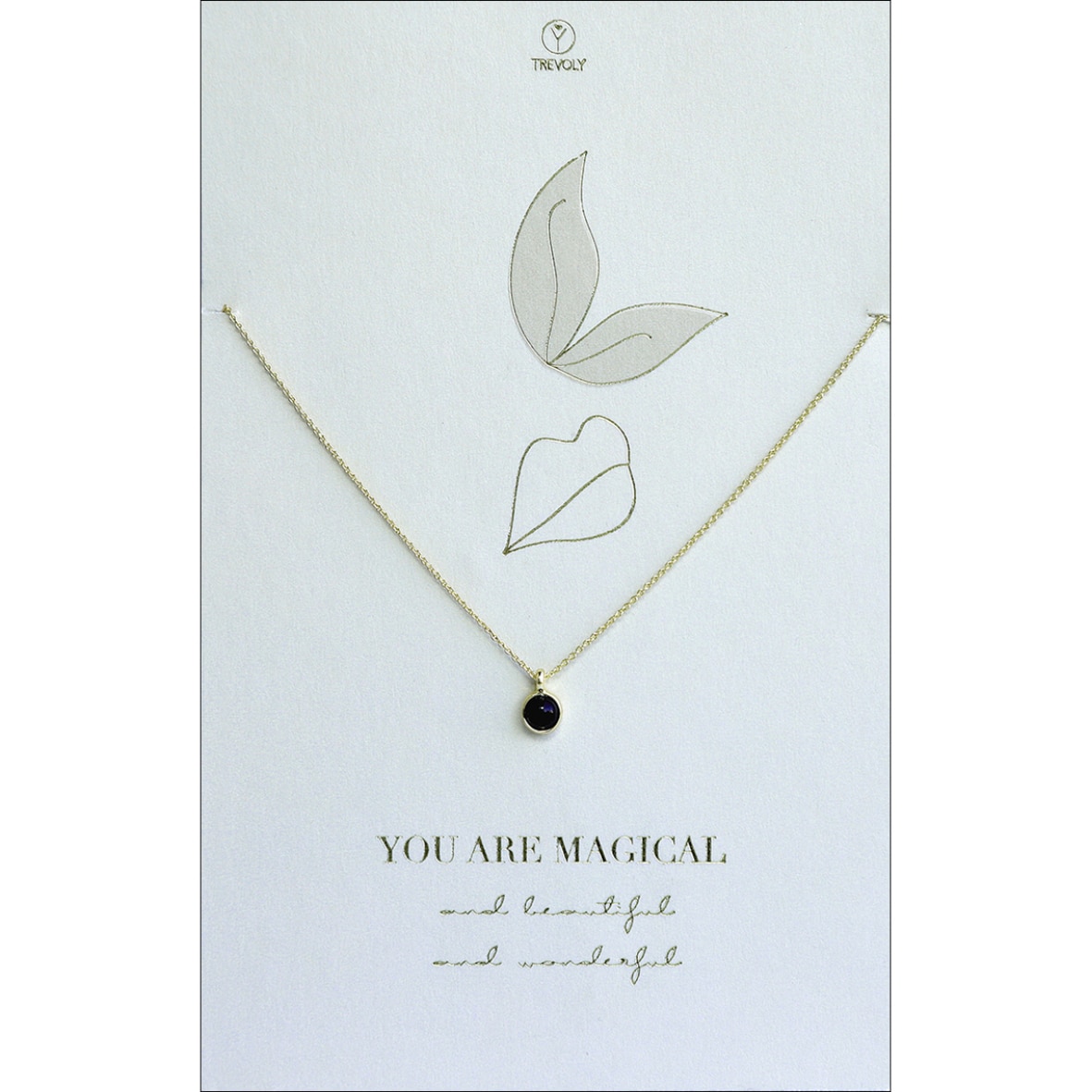 De ketting is van koper met goudkleur, draagt kort en is 47/50 cm lang. Hij wordt geleverd op een mooie kaart met goudkleurige details, zodat je het gelijk als kado kunt geven.