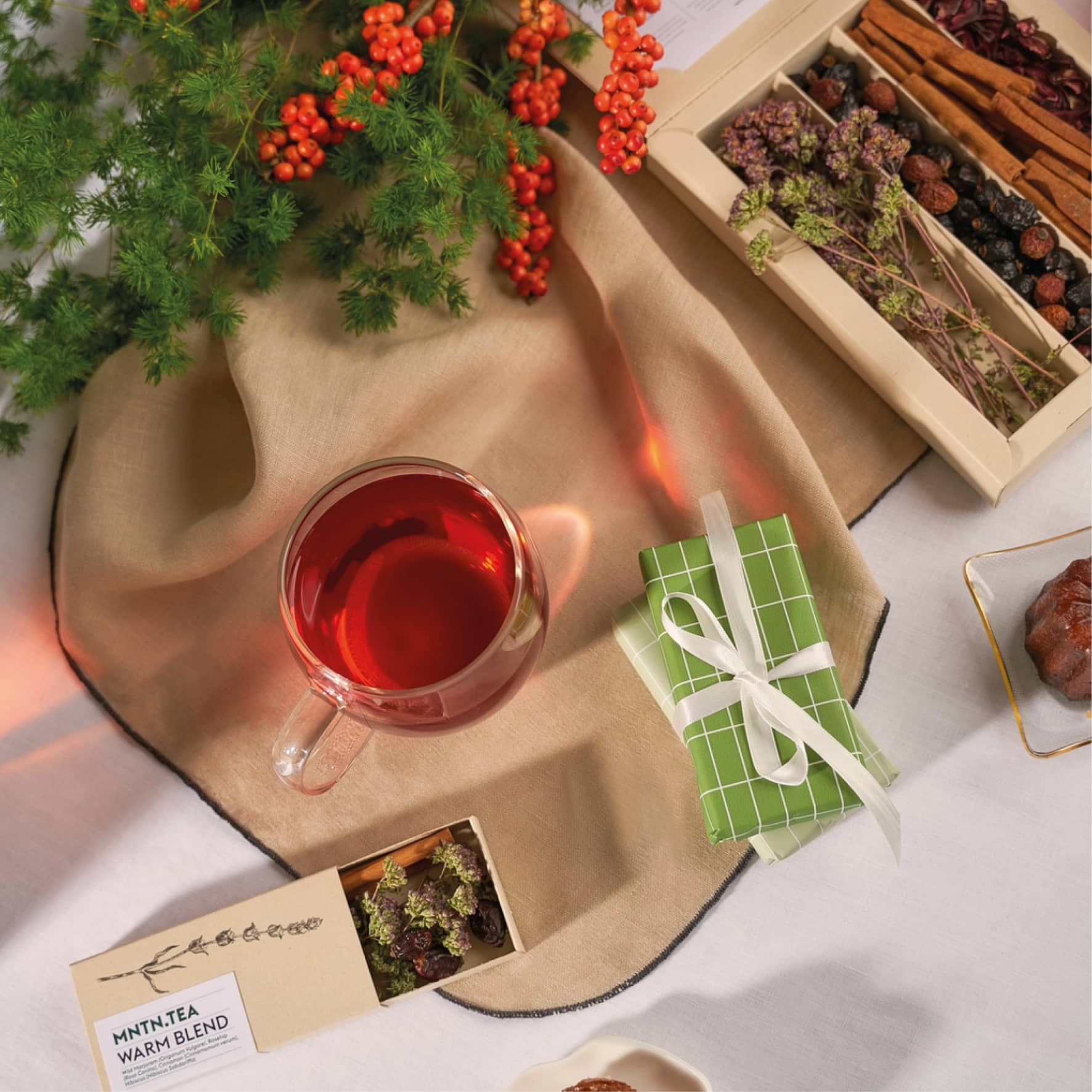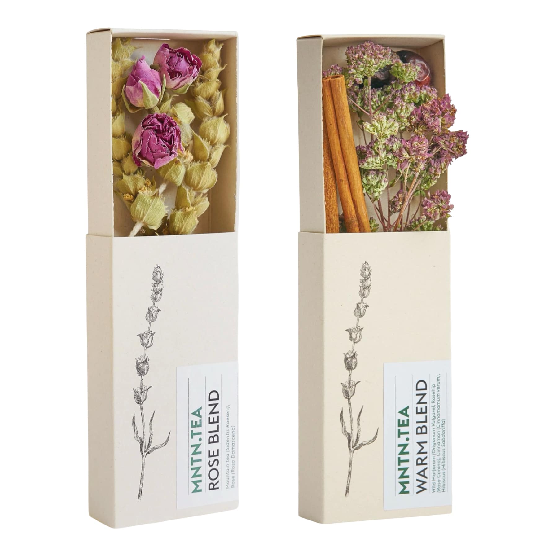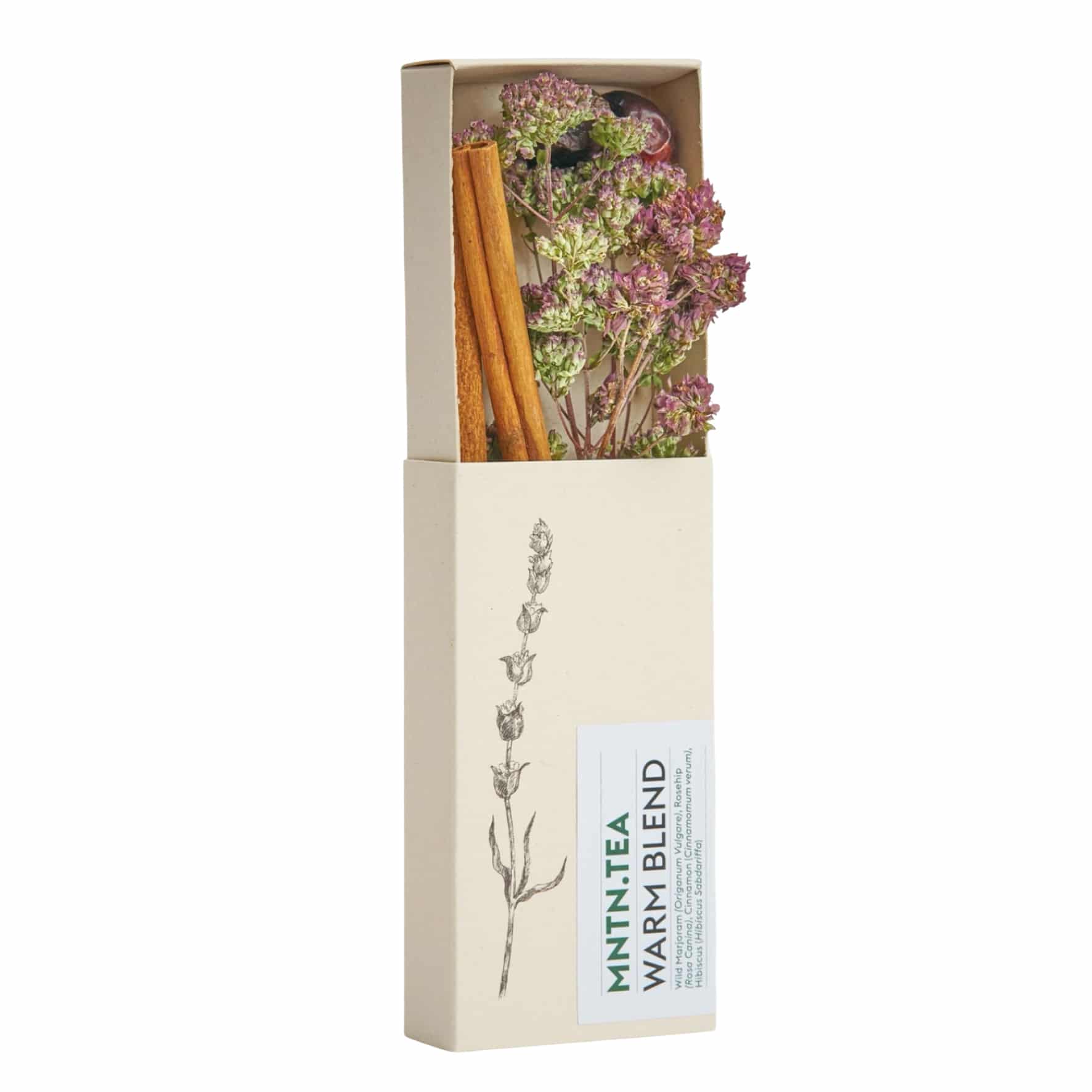 - Warm Blend: Wilde marjolein, rozenbottel en kaneel – maakt 5 kopjes/3 potten thee