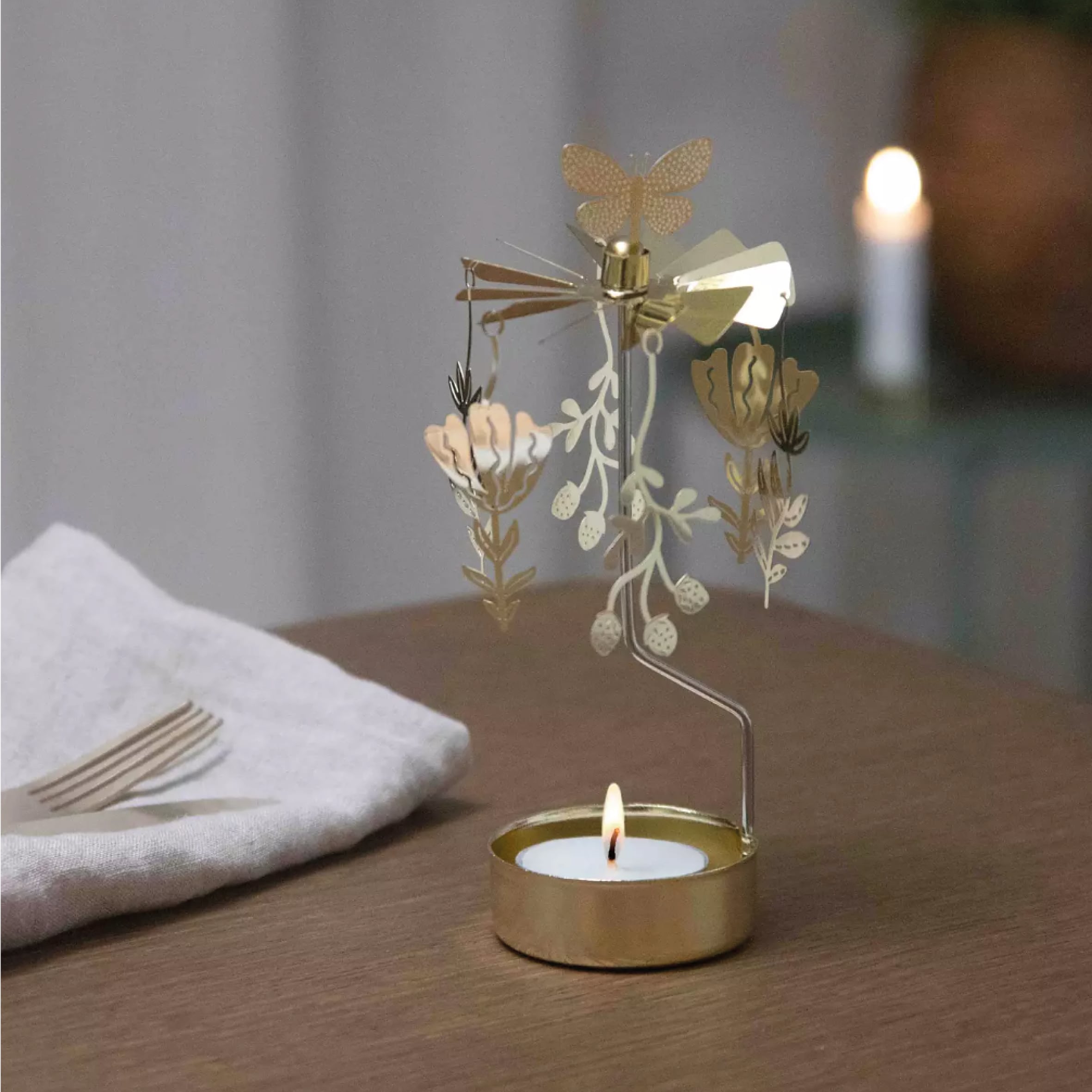 Roterend lichtje ‘Meadow’ met vlinder / goud
