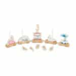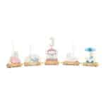 Vier de speciale dag (ver)jaardag van je kind met deze droomtrein! De trein is gemaakt van natuurlijk en geverfd hout in zachte kleuren en is voorzien van vijf illustraties uit het circus.