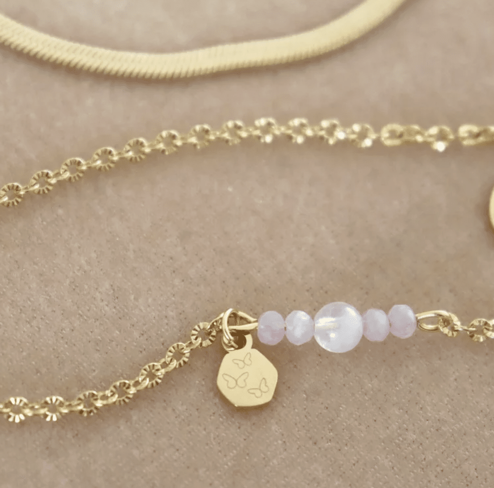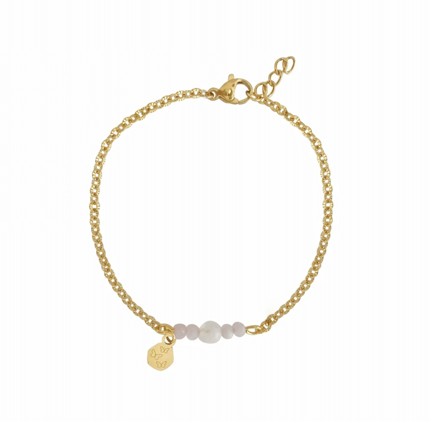 Vlindertjes Armband – Goud met Kunziet & Maansteen