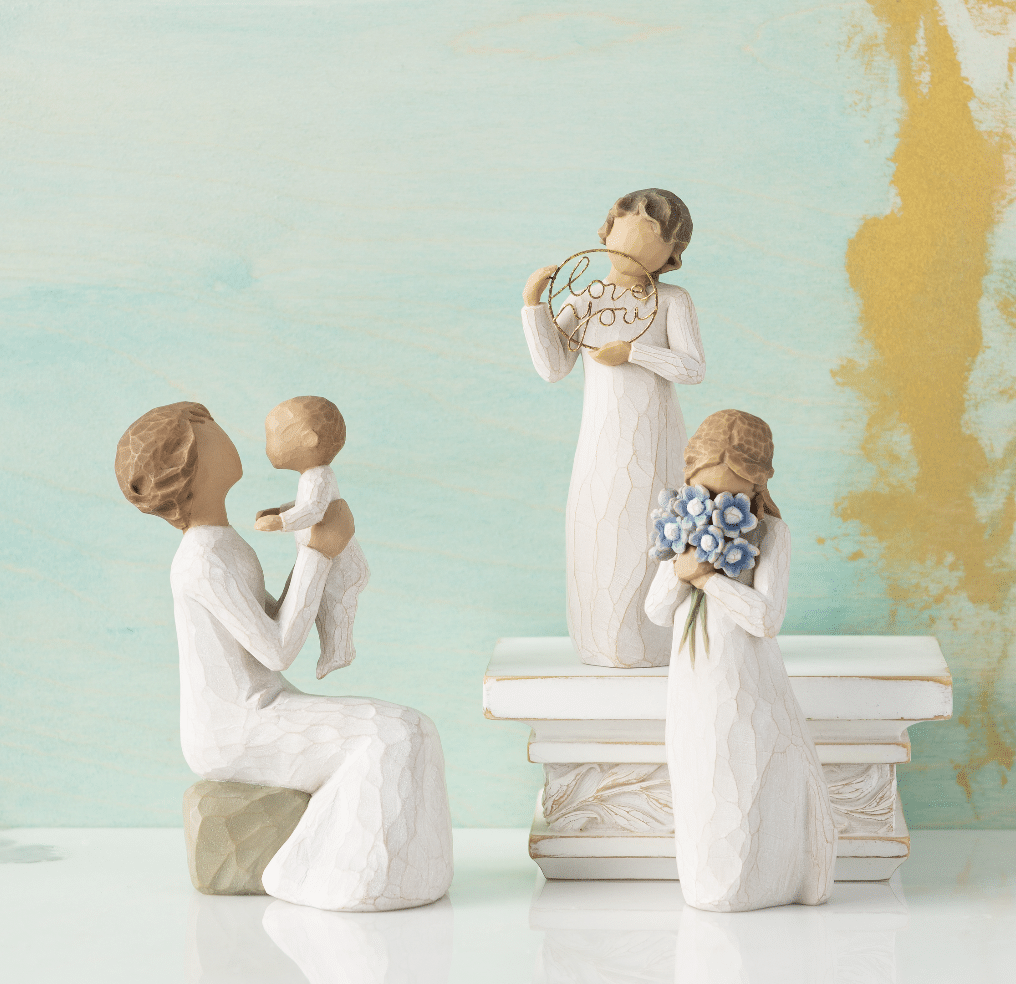 Willow Tree beeldjes zijn prachtige en unieke items, gemaakt door kunstenares Susan Lordi. Ze snijdt elk origineel eerst met de hand, en daarna worden ze gegoten en met de hand beschilderd. Met haar vrienden en familie als inspiratie model, ontstaat elk beeldje uit liefde.